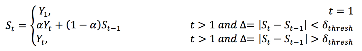 Where the α coefficient represents the degree of weighting decrease. Yt is the newly recorded instantaneous value (of disparity or depth), and St-1 is the value of the EMA at any time period t.