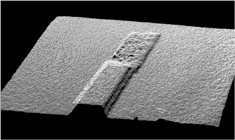 2. Edge-preserving filtering: This type of filter will smooth the depth noise while attempting to preserve edges. Consider the example below in Figure 1 of a 2D range data to a 10x10mm box placed near a wall, 500mm away from the depth camera. There will be noise on the depth measurement, as shown on the right. The ideal desired measurement is seen on the left. If we apply normal smoothing filters, we will see the depth noise will diminish, but we will also see the distinct edges of the box become smoothed out as well, as shown in Figure 2.