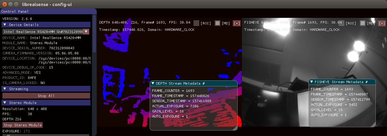 Frame metadata is a set of parameters (or attributes) that provide a snapshot of the sensor configuration and/or system state present during the frame’s generation. The attributes are recalculated and updated on per-frame basis. librealsense2 supports querying a set predefined attributes as part of the frame data available to the end-user. In this explanatory we will overview